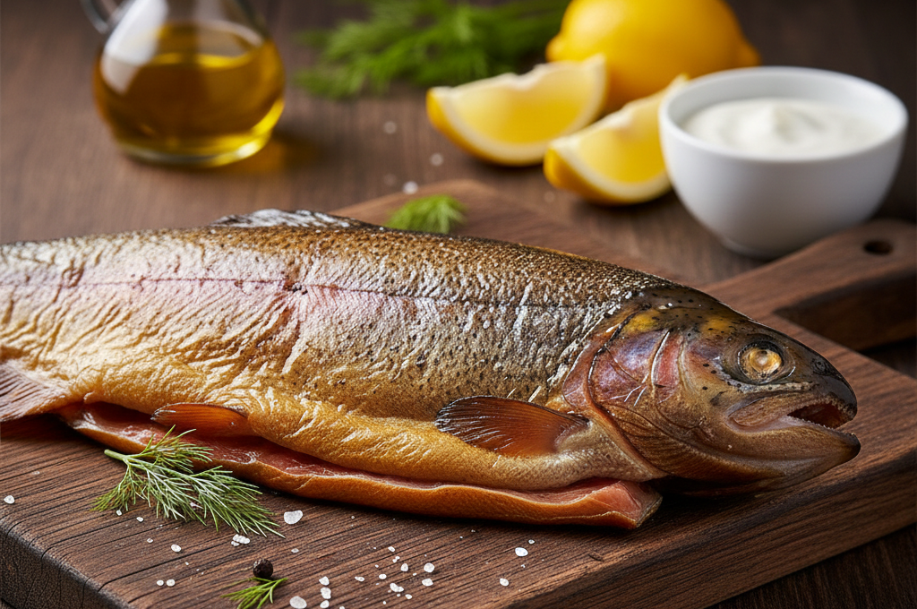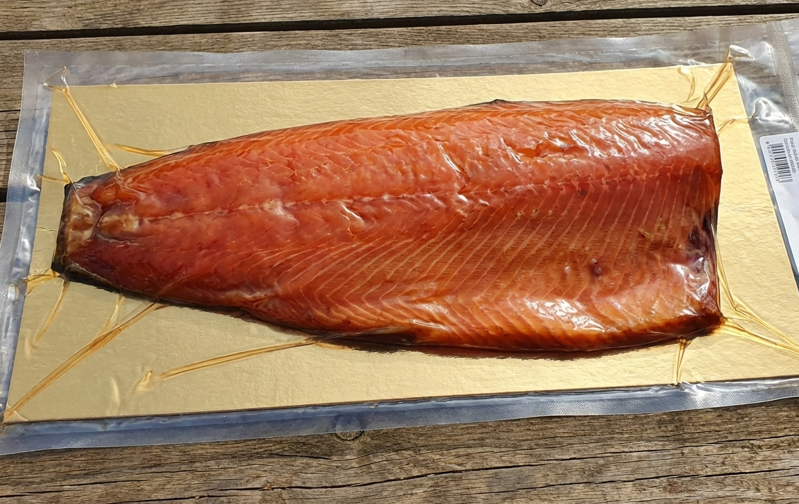 Pstruh uzený na bukovém a třešňovém dřevu teplým kouřem. DELIKATESA *****