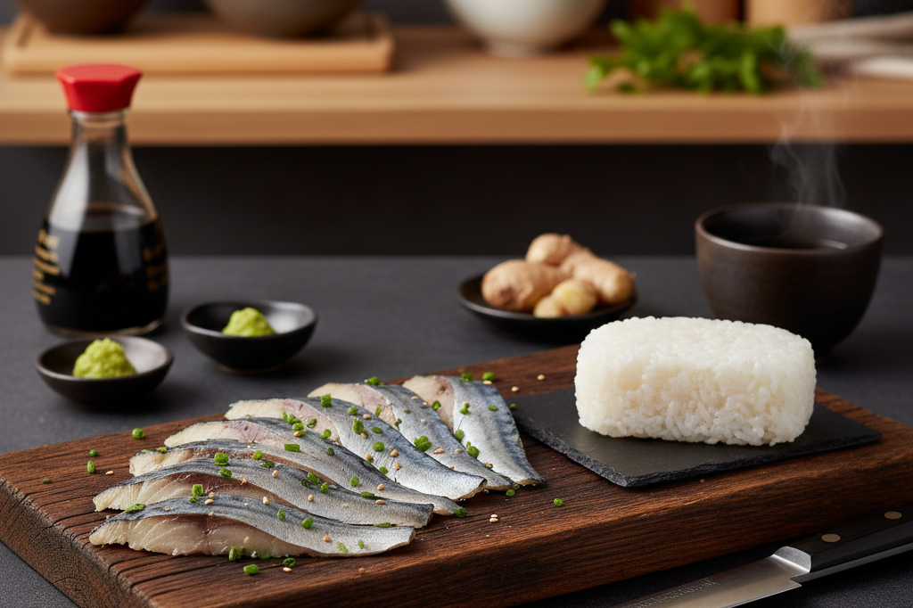 Makrela Shime Saba, připravená pro sushi. Plátky 160 g, vakuově balené a mražené. Tradiční japonská delikatesa s jemnou kyselou chutí a výraznou vůní moře.