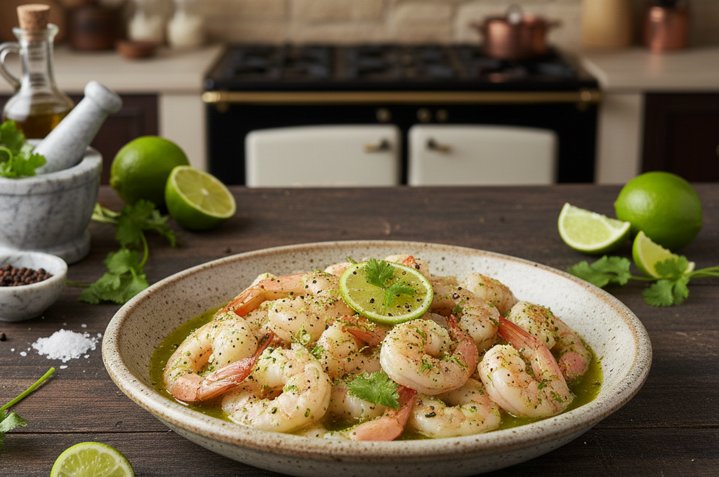 Syrové loupané krevety 16–20 ks v marinádě limeta a pepř, balení cca 250 g, připravené k rychlé úpravě.