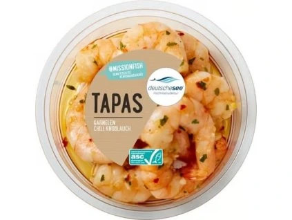 Jemné bílé tygří krevety v česnekové a chilli marinádě pro nádech pikantnosti.