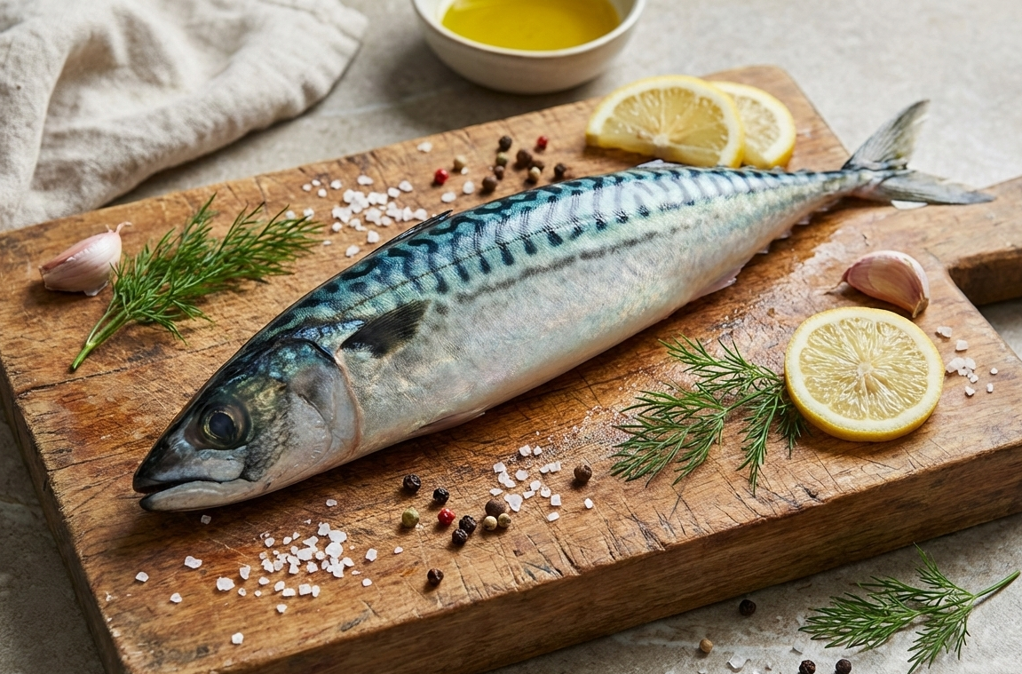 Makrela obecná (Scomber scombrus) patří k nejoblíbenějším mořským rybám na světě. Je ceněna nejen pro svou výraznou, plnou chuť, ale především pro extrémně vysoký obsah prospěšných látek. Je to dravá, rychlá ryba, což se odráží v kvalitě jejího tmavšího a velmi šťavnatého masa. Pro makrelu je typické stříbřité břicho a kovově modrý hřbet s černými "tygrovanými" pruhy. Maso je pevné, tučnější, s vysokým podílem svaloviny a výrazným aroma, které si skvěle rozumí s bylinkami a citrusem. Nutriční superpotravina, jeden z nejlepších přírodních zdrojů Omega-3 mastných kyselin, vitamínu D, B12 a selenu. Makrela je v kuchyni neuvěřitelně univerzální. Náš tip "Makrela má velmi intenzivní chuť, proto ji doporučujeme kombinovat s něčím kyselým – citronem, limetkou nebo lehkým bílým vínem. Skvěle ji doplní také bylinky jako rozmarýn, kopr nebo dijonská hořčice."