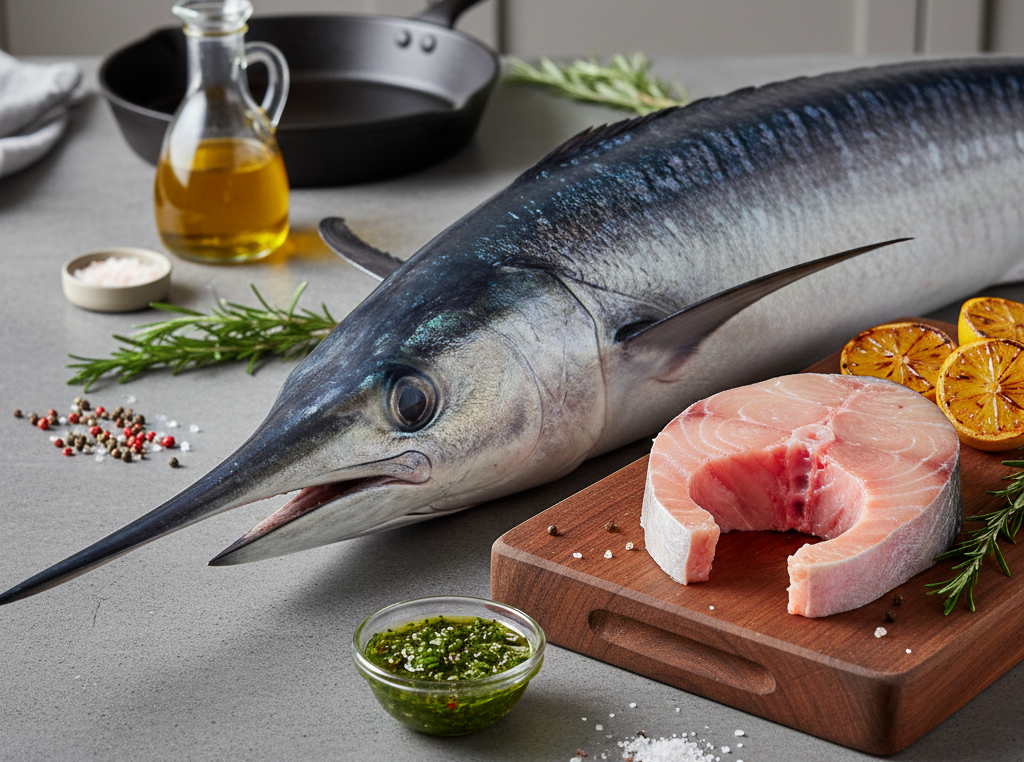 Mečoun patří k nejvíce fascinujícím a kulinářsky nejvíce ceněným rybám světových oceánů. Díky své síle a rychlosti má tato ryba unikátní strukturu svaloviny, která se nepodobá žádné jiné – připomíná spíše jemné telecí maso než klasickou rybu. Vzhledem je mečoun elegantní predátor s typickým horním čelistním výběžkem ve tvaru meče. Jeho tělo je svalnaté a hydrodynamické. Maso má světle narůžovělou až krémovou barvu. Je mimořádně pevné, bez drobných kostí a s velmi nízkým obsahem tuku. Chuť je jemná, čistá a lehce nasládlá. Je to ideální volba pro ty, kteří s rybami začínají nebo nemají rádi silné "rybí" aroma.
